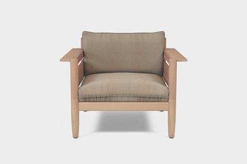 Tous les bois utilisés dans la collection sont rigoureusement sélectionnés et protégés contre les UV pour assurer une longue et belle vie en extérieur. Chaque pièce de tissu résistant aux UV intègre une barrière imperméable et une mousse à séchage rapide, garantissant un confort optimal et une grande durabilité.